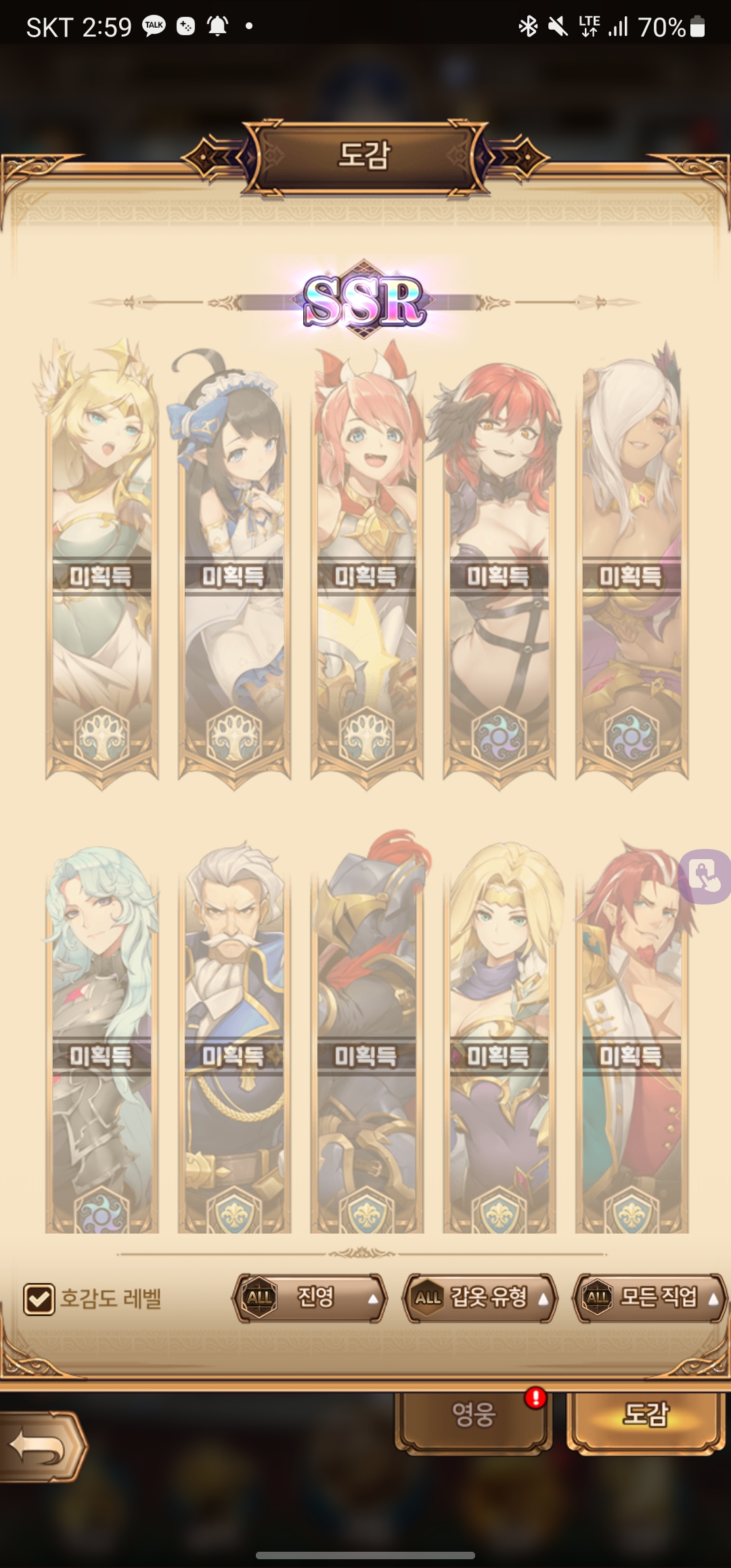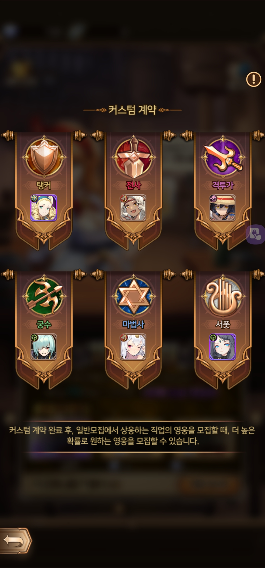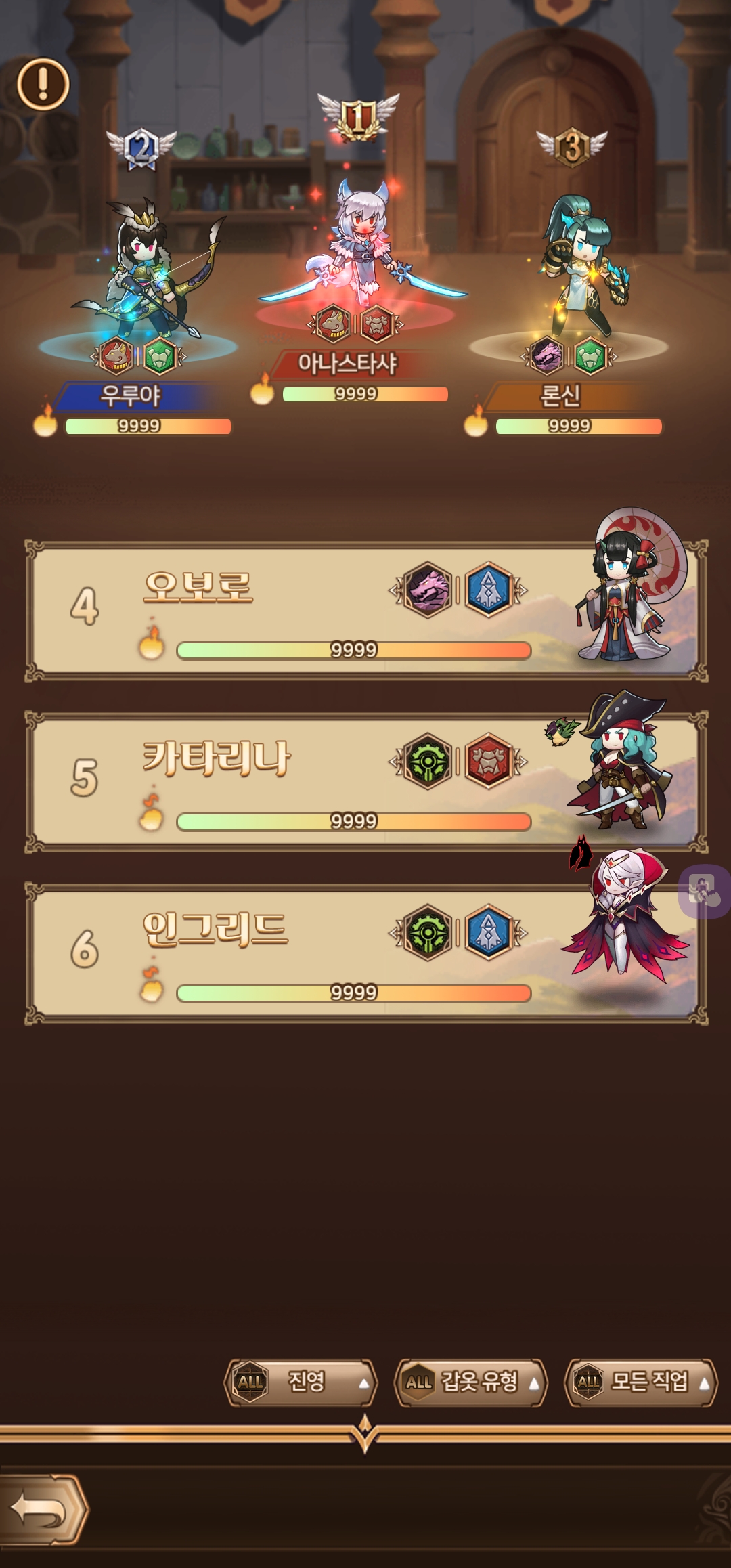 그나마 좋은 점은 클래스별 6가지의 캐릭터들을 선정할 수 있다는 점이고, 안좋은 점은 각 캐릭터들을 눌러도 도감과 연계되어 있지 않은 덕분에 이름을 제외하고는 아무 내용도 찾아볼 수 없어서 다시 도감을 들춰봐야한다는 점이네요.