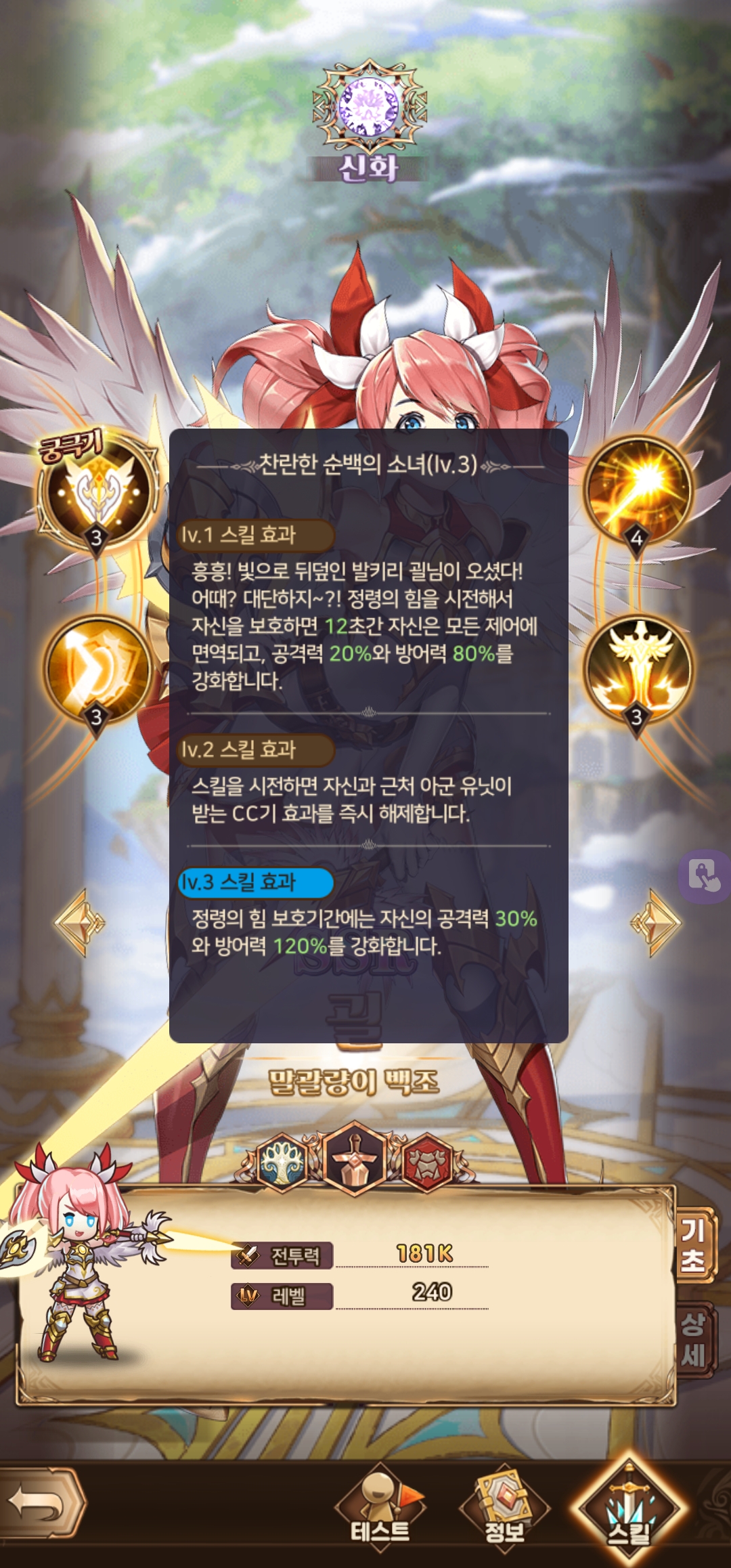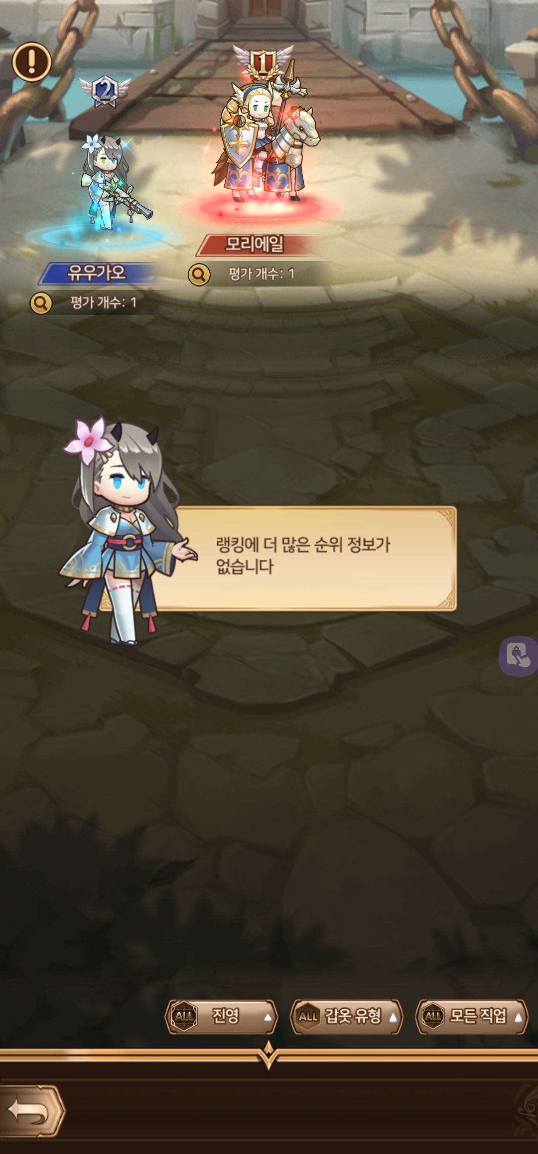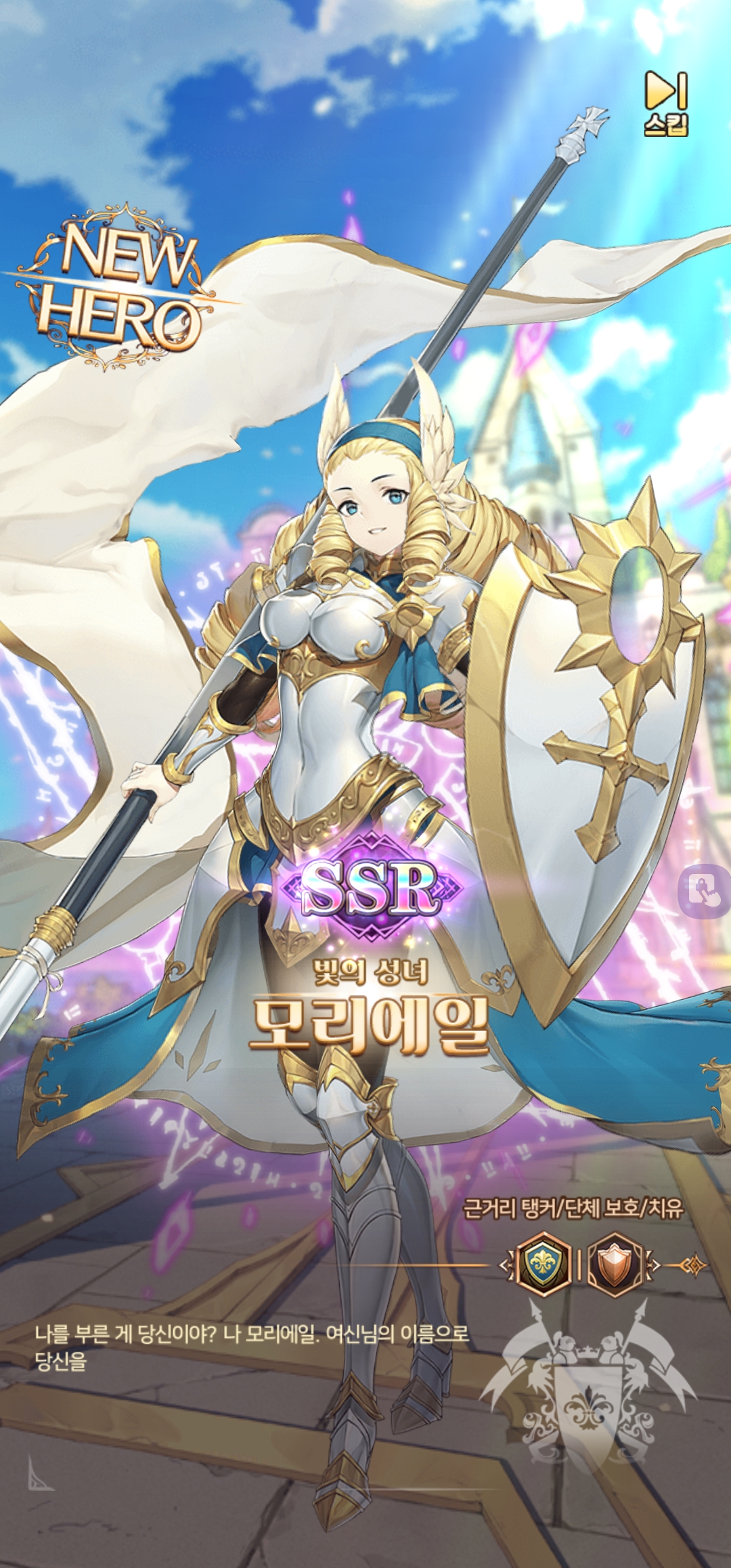 특히 모리에일의 경우에는 탱커에 스킬 자체가 아군 보호막 형성이라 초반 스테이지를 밀거나 향후 결투장에서도 자주 쓰일 것 같은 전형적인 필수 탱커의 느낌이 나네요.