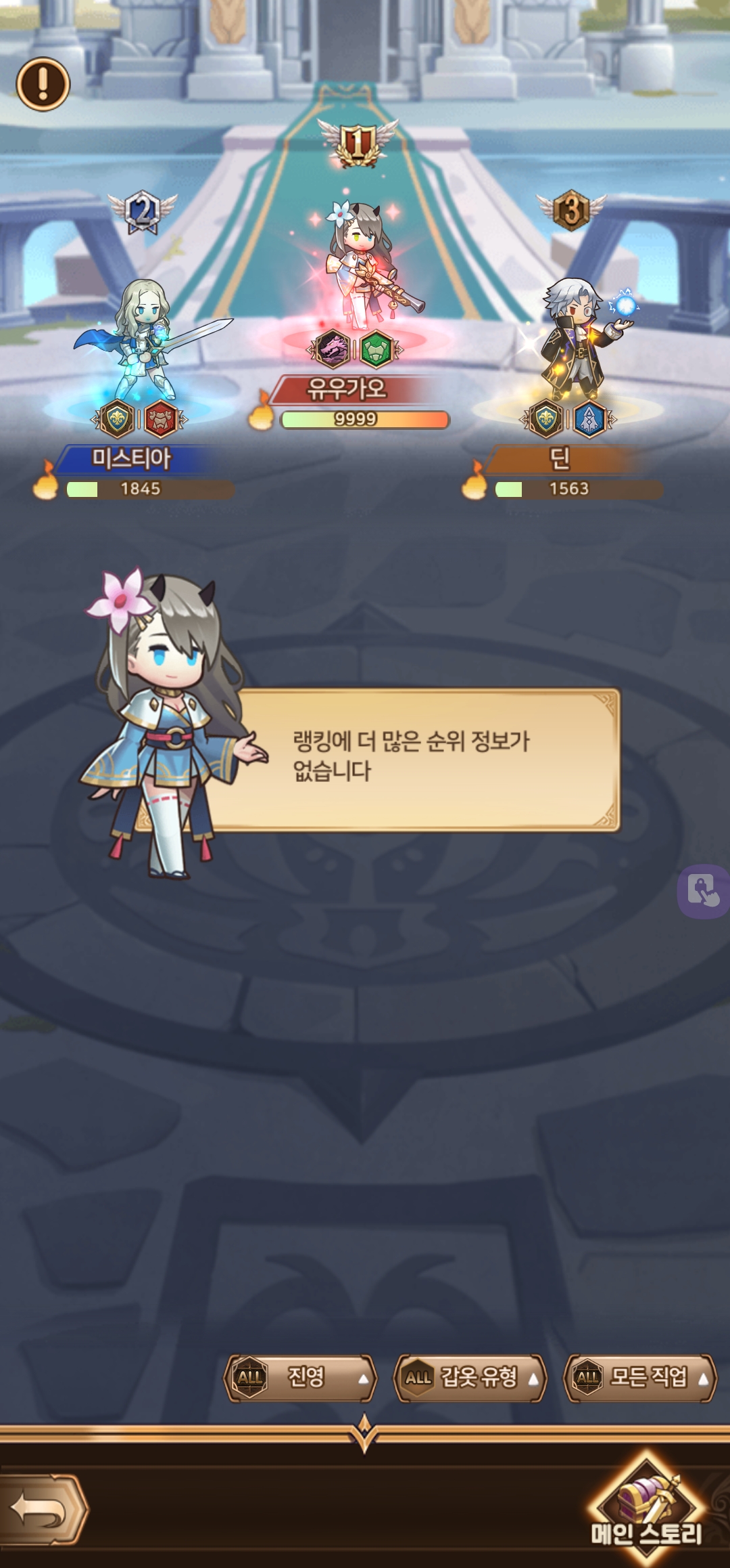 그래도 다행인건 게임내에서 사람들이 많이 사용한 캐릭터 순위, 뽑기 픽업 순위, 평가 순위 의 3가지 랭킹으로 매일매일 캐릭터들이 업데이트 되는 점은 정말 좋은 점인 것 같아요.