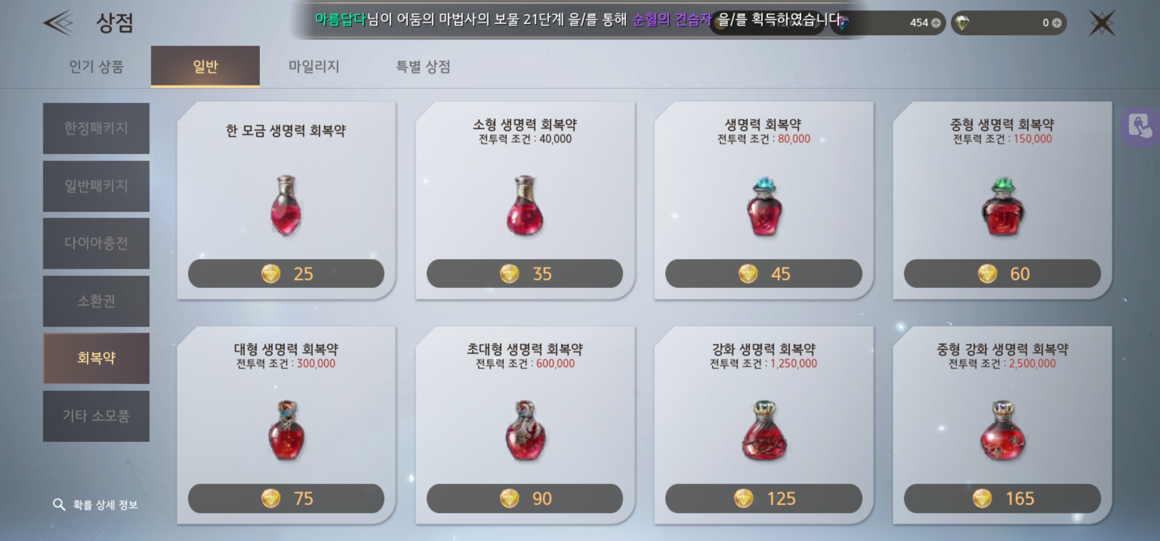 특히 마을을 가지 않더라도 유료상점 탭에서 바로 일반 회복약을 게임 골드로 구매할 수 있는 점은 진짜 베스트!