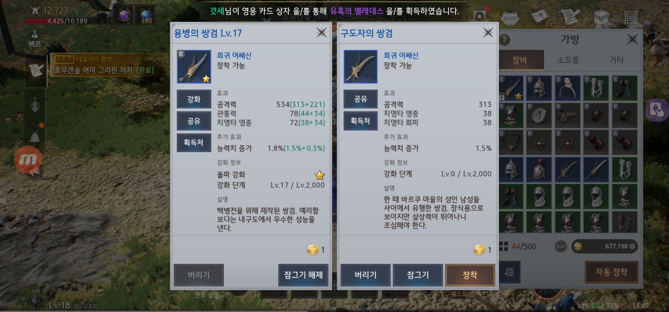 한가지 차이가 나는 점은 아이템 강화를 진행할 시에 일반적인 템들이나 재료로 강화를 하면 아이템 레벨만 상승하는 반면, 동일 희귀도와 부위에 맞는 아이템을 강화하면 돌파 강화라고 아이템 별로 추가적인 능력치가 조금씩 반영되는 구조였어요.