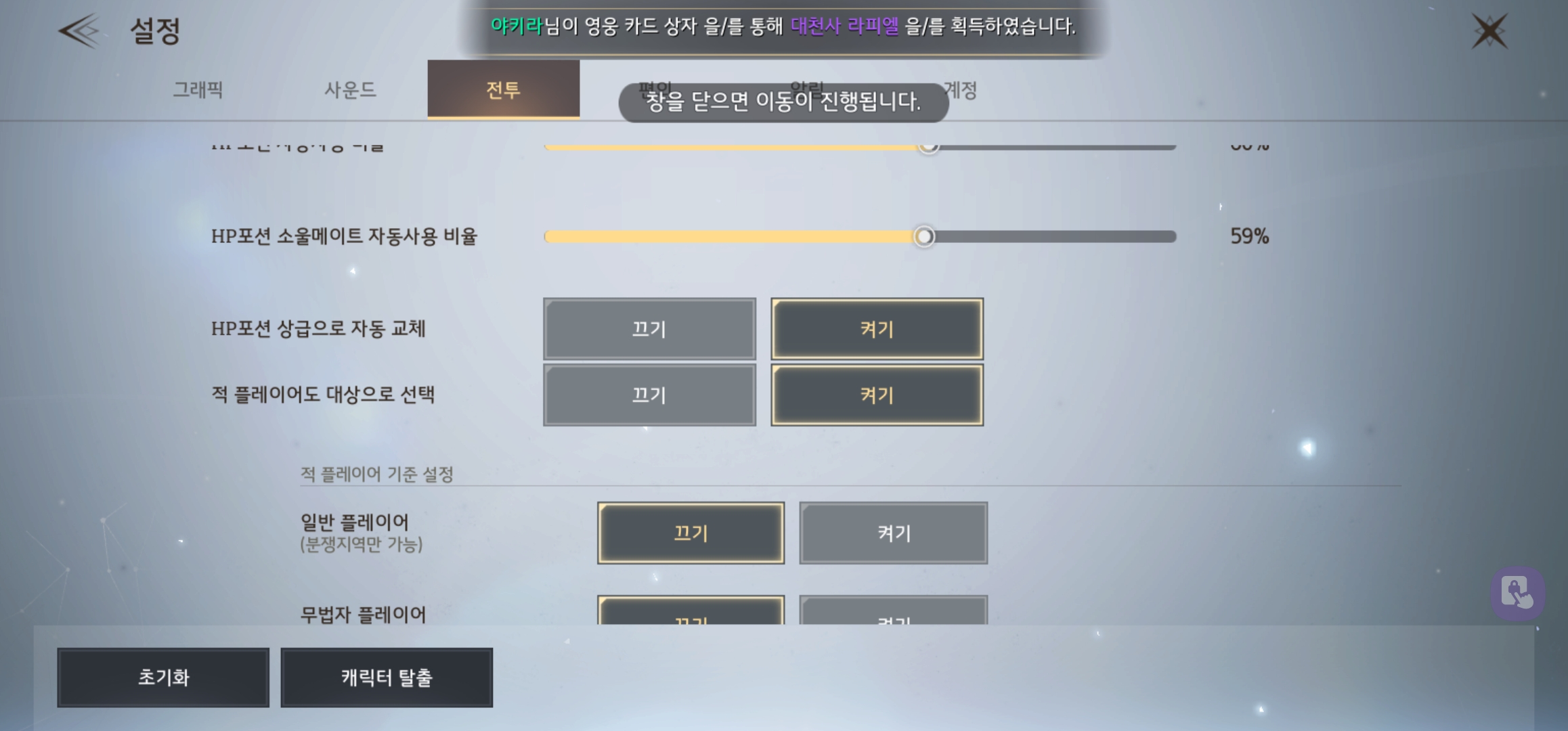 게임설정은 다른 MMORPG 게임류들과 비교해도 유사한 수준의 다양한 기능들을 셋팅할 수 있었어요.