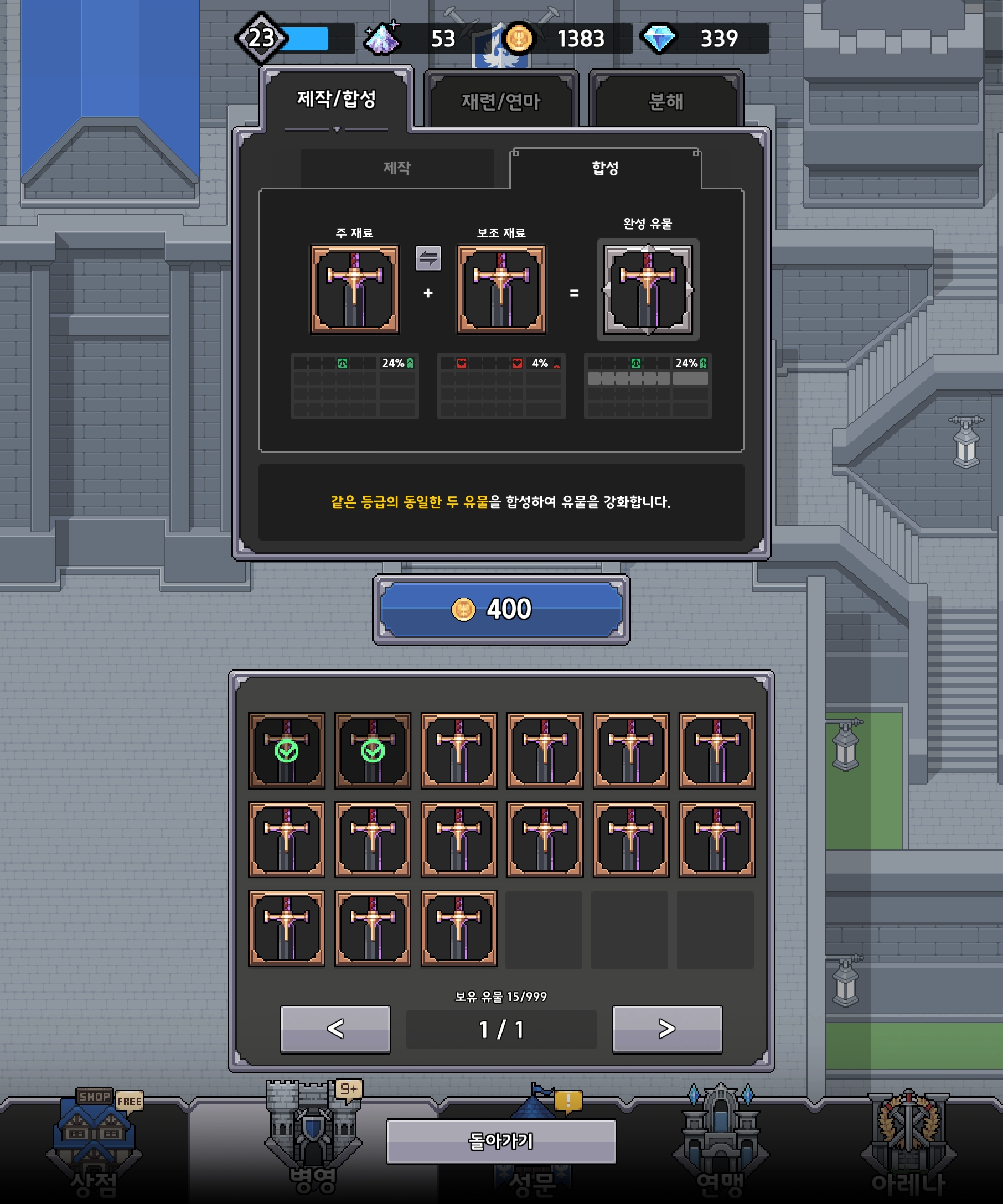 게임 중간마다 도움이 되는 제련아이템들이 등장할 확률과 효과를 높여줘요.